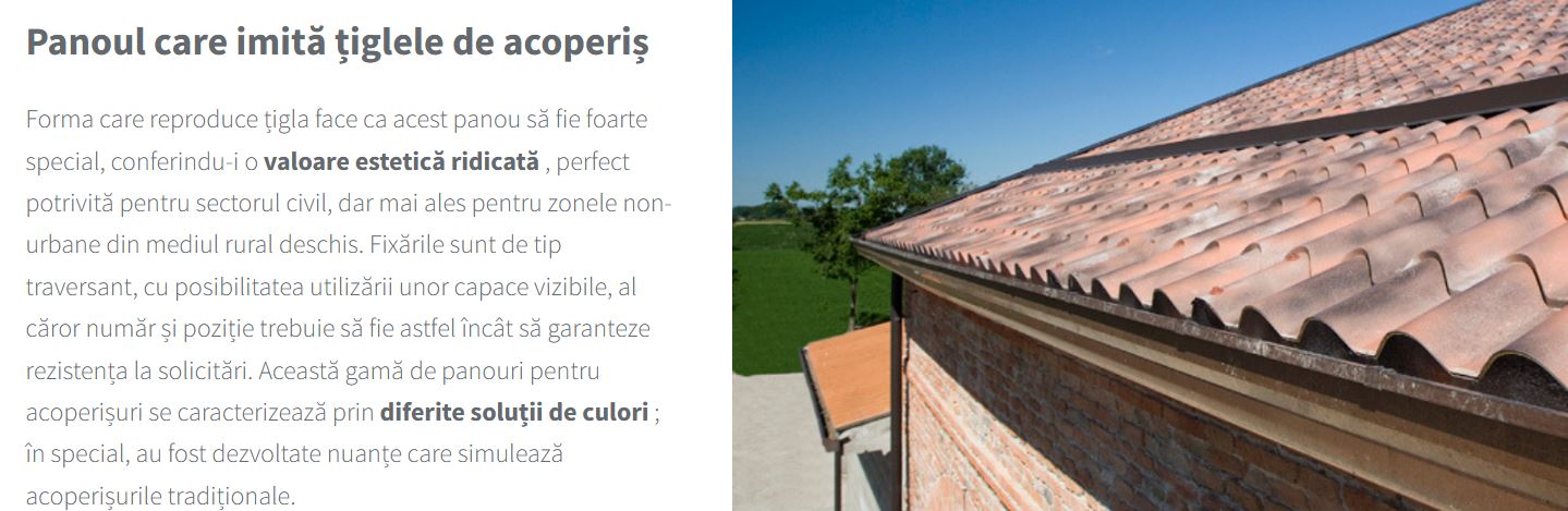 pentru acoperis este caracterizata de o mare paleta coloristica; in mod special au fost dezvoltate tonalitati ce