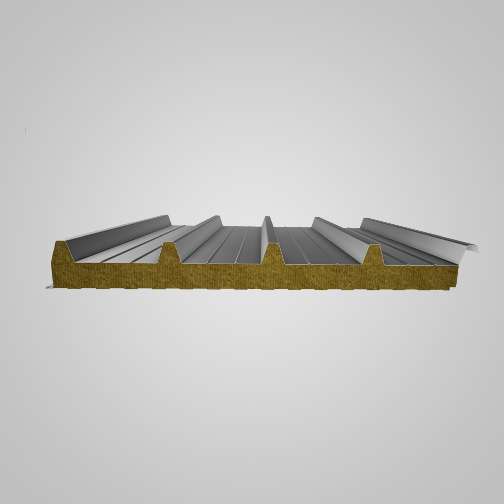 Profilarea placajului metalic face ca peretii sa arate estetic placut Conector de fixare ascuns care ofera fatadelor un aspect mai uniform O raza mare de profilare a broastei care asigura integritatea straturilor de protectie. conectorul de fixare Marginile conturate facilitează asamblarea și măresc izolația termică Garnitură poliuretanică continuă care menține izolația termică ridicată. A fost aplicat în timpul procesului de producție Folia de aluminiu împiedică pătrunderea vaporilor de apă în miezul de spumă poliuretanică Miez din spumă PIR rigidă cu izolație termică și proprietăți la foc foarte bune