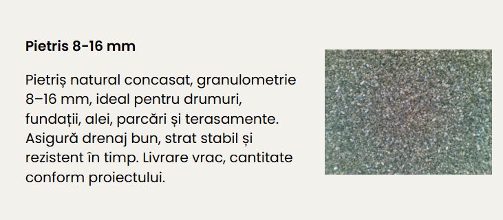 Pietriș concasat sort 8–16 mm