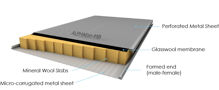 Bariera metalică antifonică ALPHA fon -MB este compusă dintr-o tablă galvanizată pe partea exterioară și tablă perforată pe partea interioară.