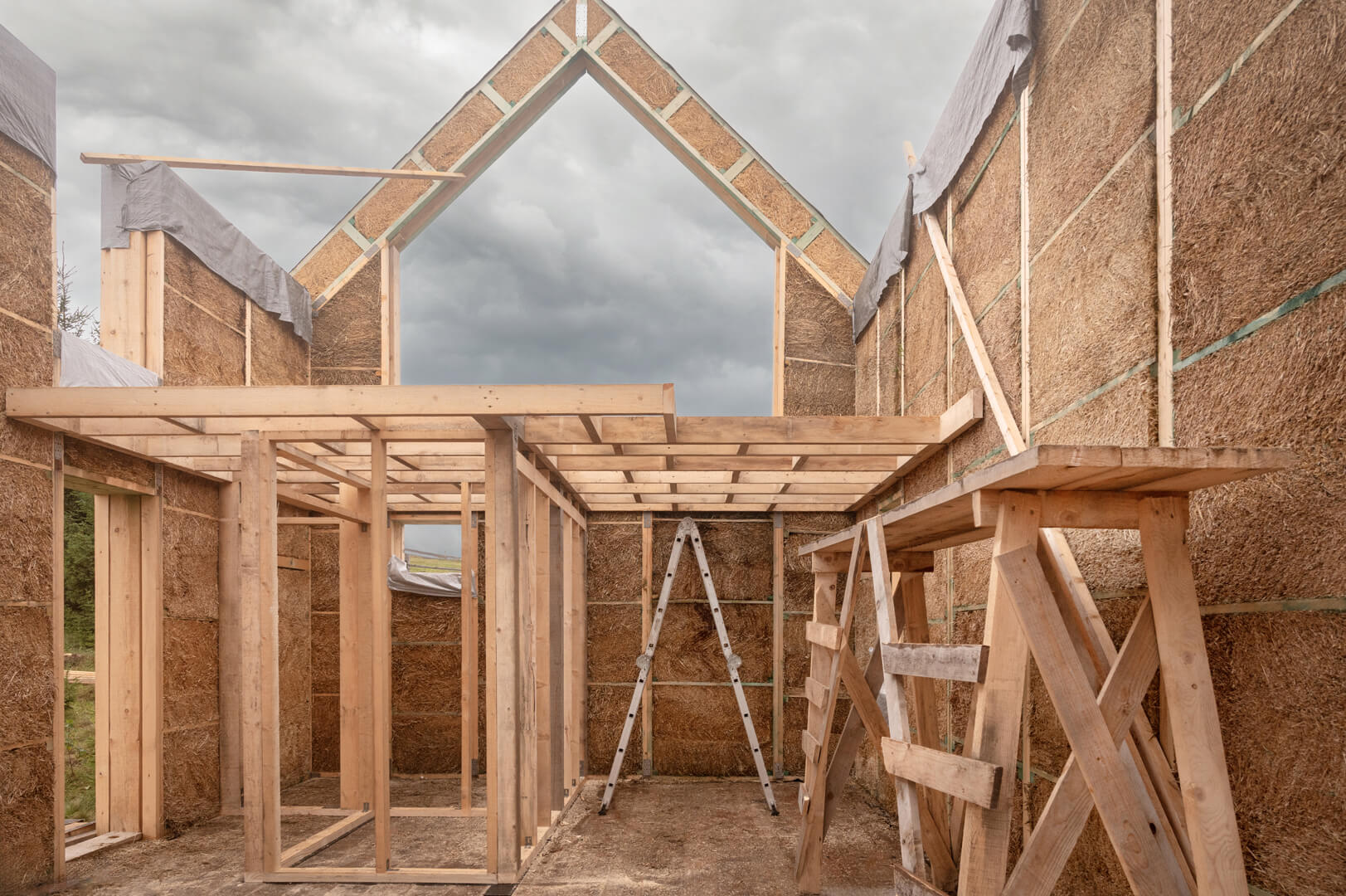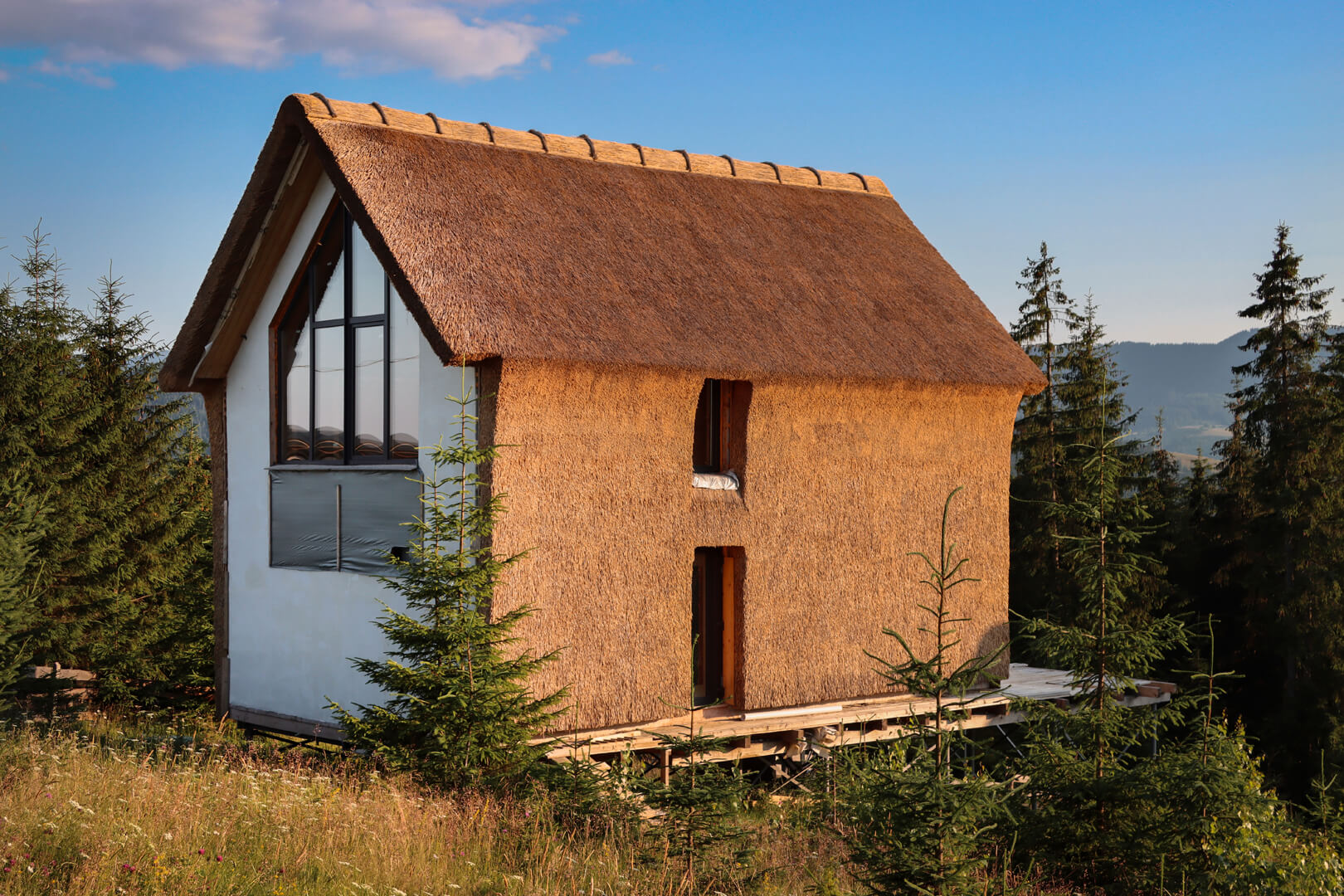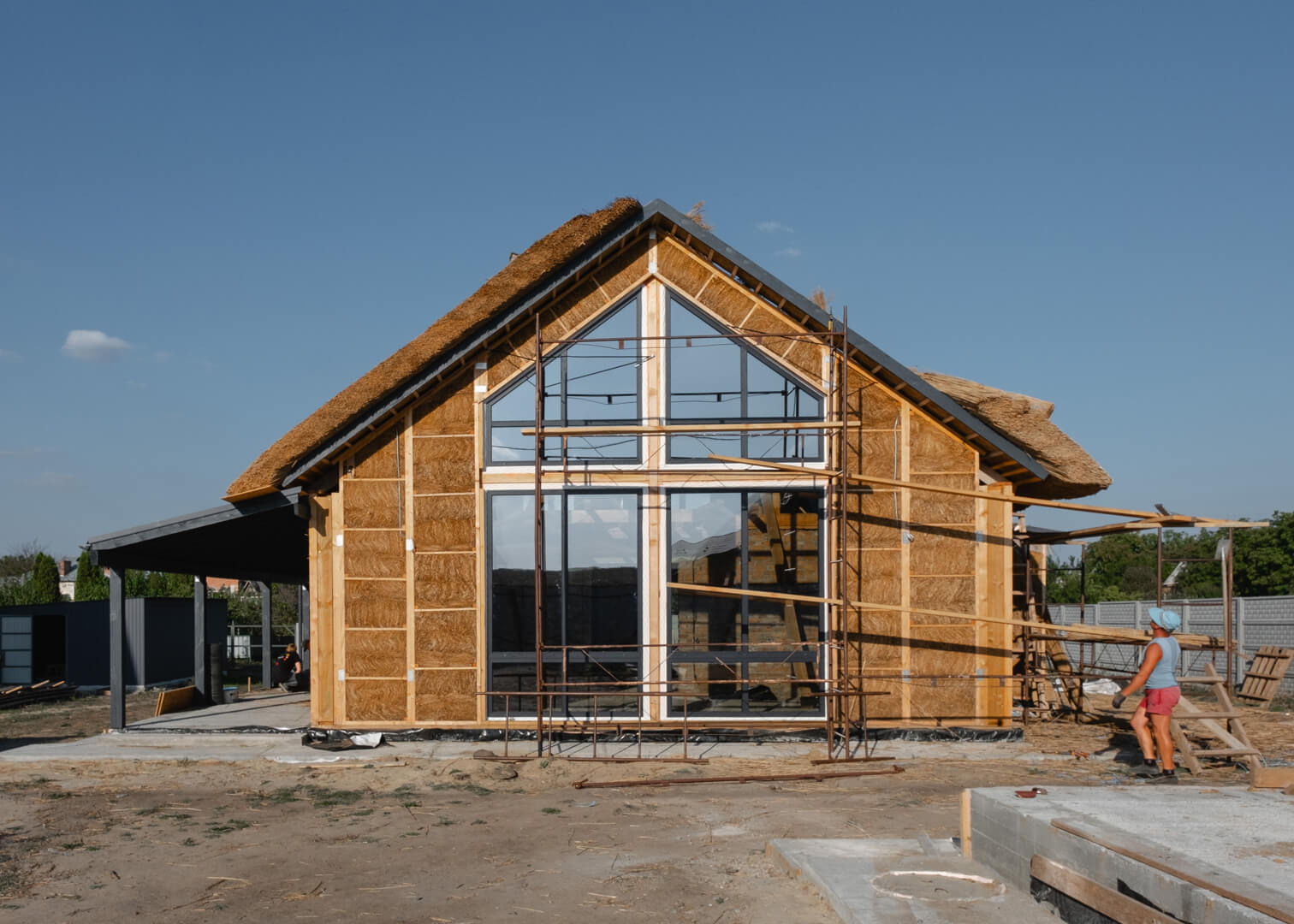 Combinația de paie, lut și lemn este un amestec de materiale reușit: se completează reciproc și oferă caracteristici unice clădirii, alături de un microclimat interior excepțional.