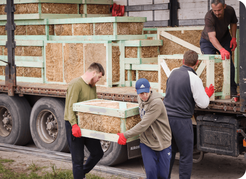 Folosim doar paie de secară uscate, depozitate sub acoperire și care nu au fost expuse la ploaie în momentul recoltării. În timpul producției panourilor, paiele sunt comprimate mecanic sub o presiune de 5 tone/m².