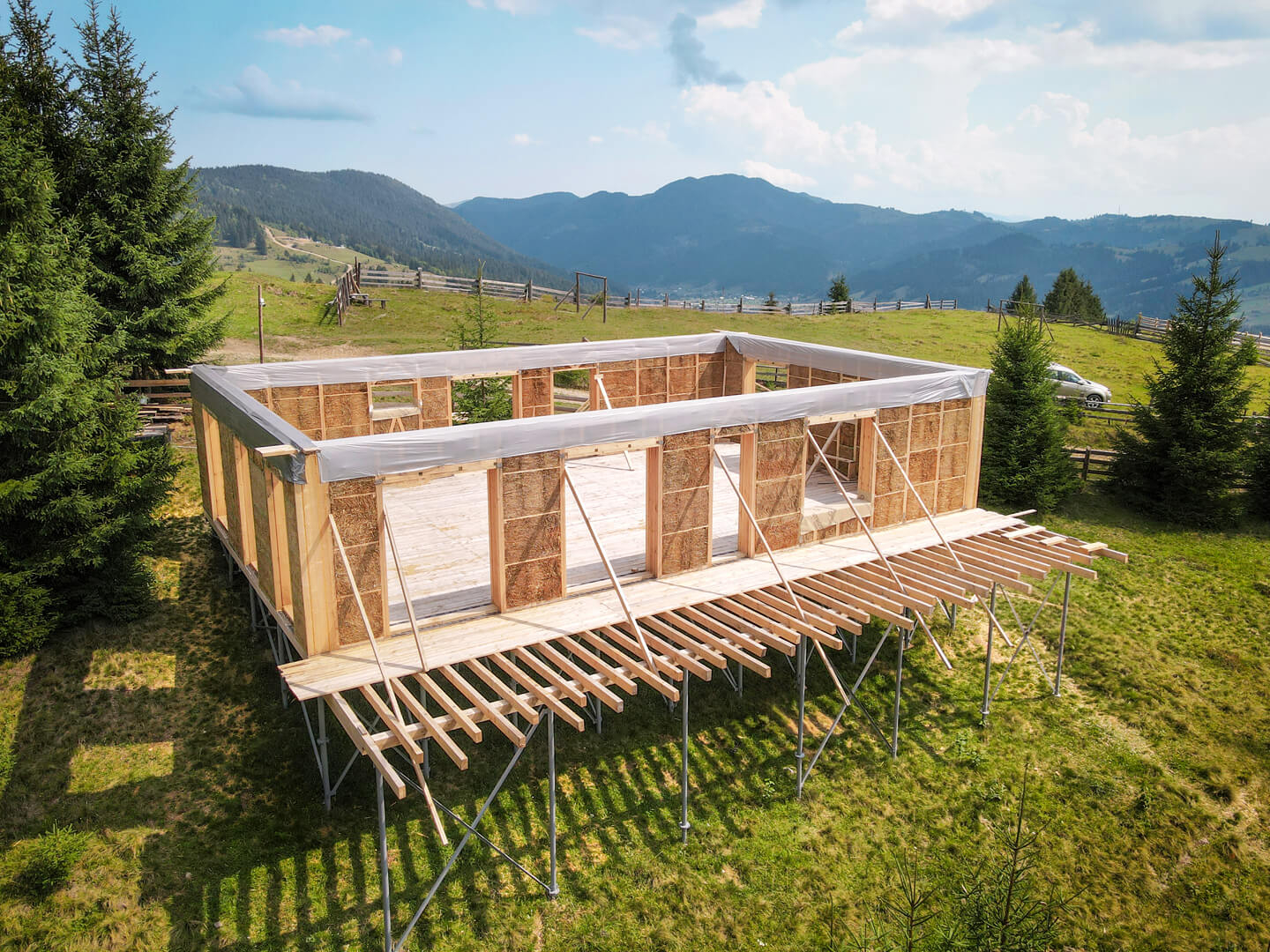 Panourile noastre au la bază o structură realizată din lemn calibrat, uscat în cuptor. Acest material robust are un echilibru ideal între rezistență, greutate și durabilitate, permițându-ne să construim clădiri cu structură de până la 3 etaje și să garantăm o durată de viață de până la 100 de ani.