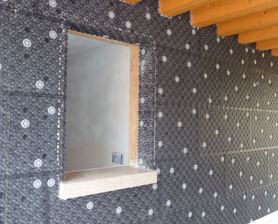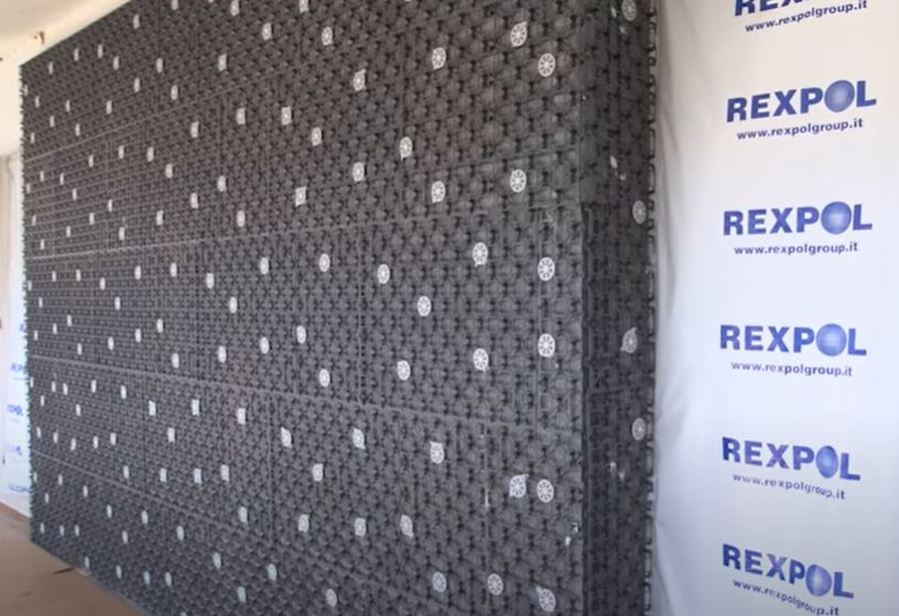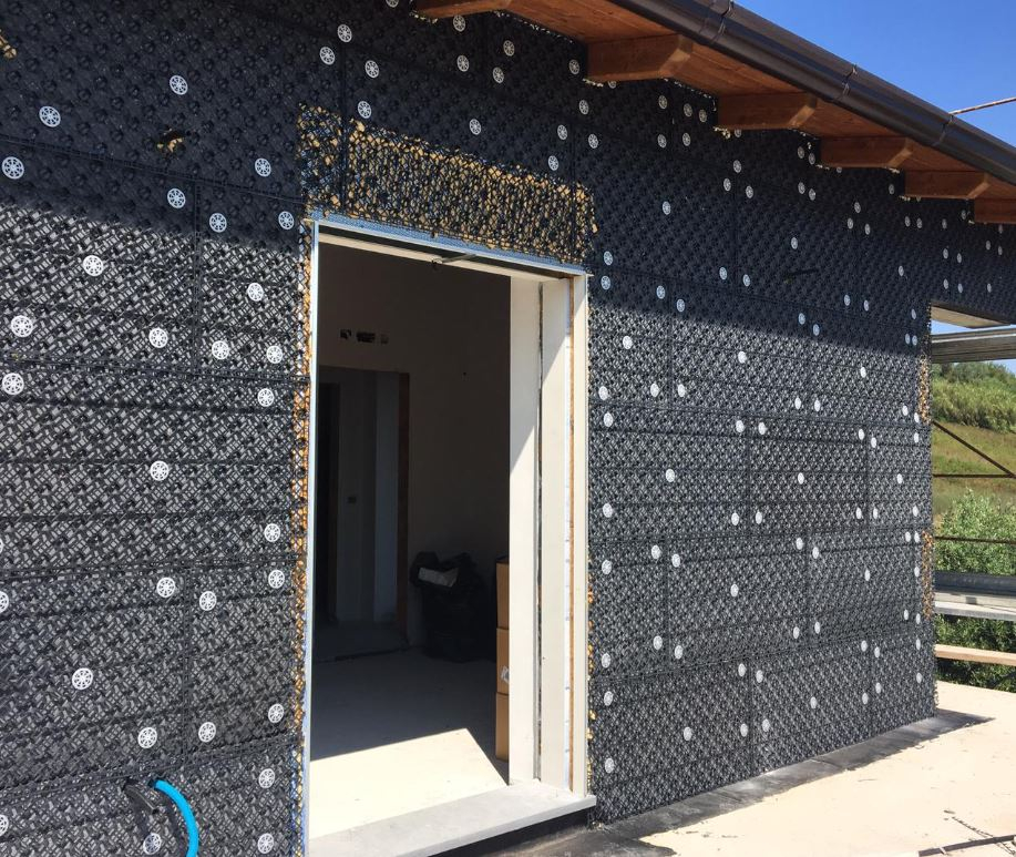 polistiren expandat sinterizat de inalta densitate (EPS) cu absorbtie redusa de apa, echipata cu plasa speciala tridimensionala de sustinere a tencuielii din polipropilena armata, cu zone specifice pregatite pentru fixarea ulterioara mecanic.
